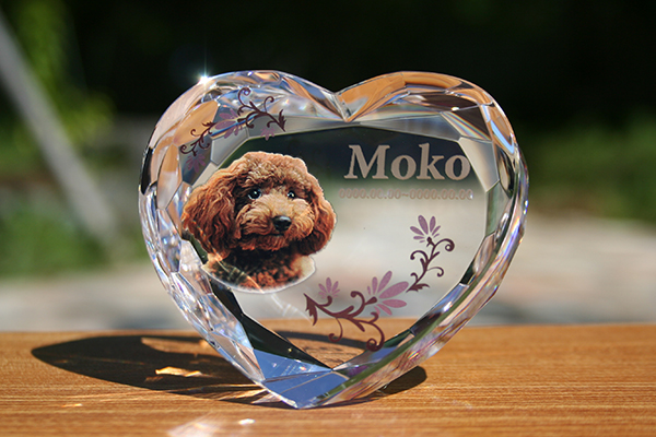 ▼キュートなハート型のガラスにキラキラと輝くカッティングを施したオブジェタイプのアイテム。メモリアルとして大人気の商品です。カラー加工対応商品です。
