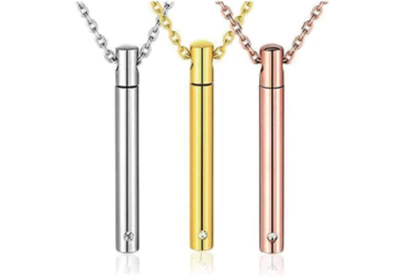 ▼粉骨した遺骨を収蔵するメモリアルペンダント